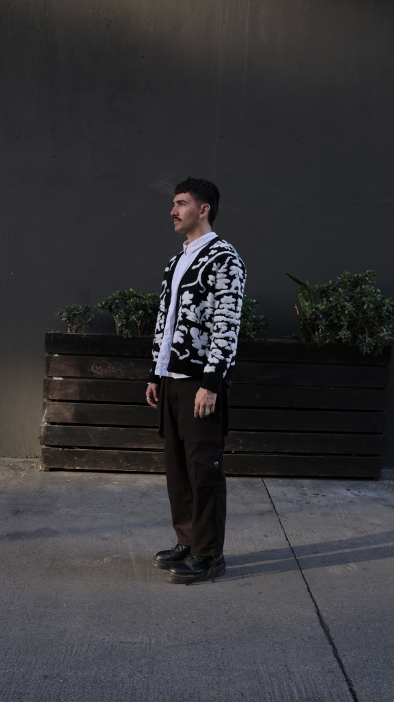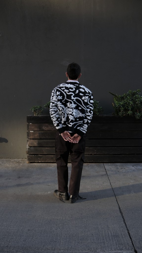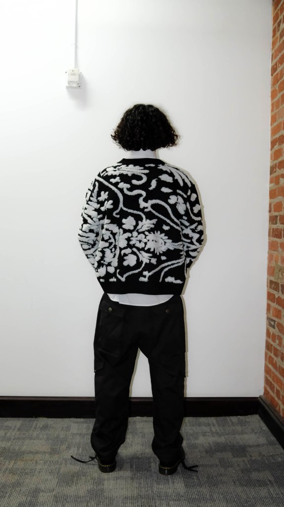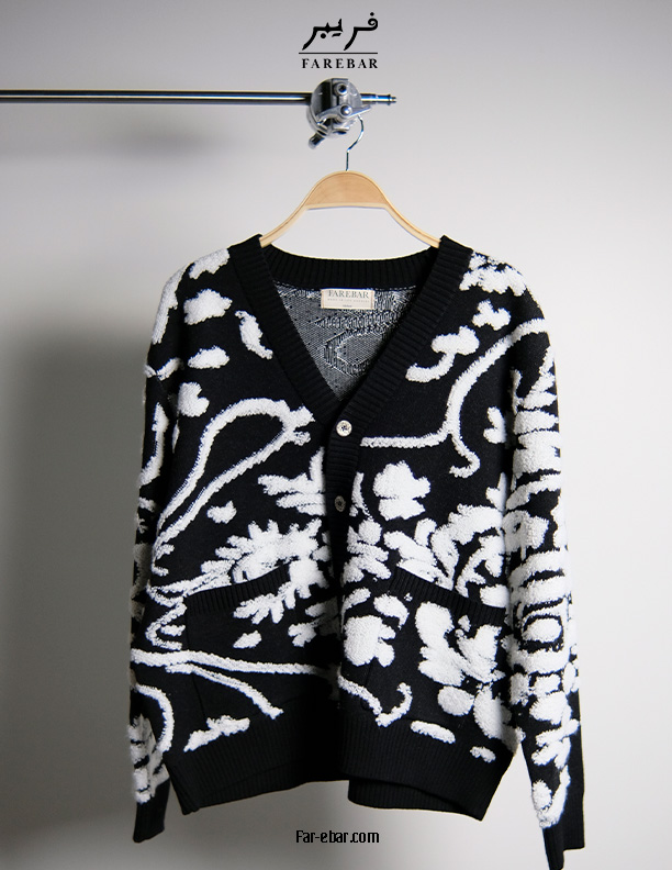 The legacy of this garment is a love letter to the masterful rug weavers of Iran—a tribute to an art form that transcends time. Each thread whispers of devotion, each pattern speaks of sacrifice. It is a craft woven with patience, shaped by generations of hands that turn labor into poetry. Beyond its surface lies a deeper meaning—one we will unravel in time. Our creative signature is etched in the language of Persian motifs—paisleys that dance like flickering flames, florals that bloom with untold stories, trees that stand as guardians of heritage. Hooks and eyes entwine like fate itself, while stars scatter across the fabric like celestial echoes of a timeless craft. Each symbol is a whisper from the past, reimagined for the present. We set out to craft a cardigan that embodies both movement and texture—a piece that flows with the rhythm of tradition and speaks through the language of design. Through Jacquard knitting, we sought to weave a tapestry of depth and intricacy, where each pattern tells its own story. Inspired by Persian motifs—renowned for their hypnotic motion and visual harmony—we created a garment that does not simply exist but moves, breathing life into stillness. Like a river winding through time, its patterns ripple across the fabric, carrying whispers of history, artistry, and devotion.Persian carpets are more than an inspiration; they are the very soul of our brand’s narrative. It would be easy to speak of their ornate beauty, their place in the grand halls of history, or their association with luxury. But my connection to them is something far more intimate. My inspiration is woven not only from the elegance of Kashan’s vintage carpets but from the memories they hold—the echoes of home and heritage. I think of the hours spent waiting at Detroit Metro Airport, watching my grandfather arrive not with luggage, but with three Persian carpets slung over his shoulders. I recall afternoons playing chess with my cousins, sipping tea at my grandparents’ home in Qaemshahr, the scent of chai rising into the humid summer air as I sat beside my grandfather on his porch. And I cherish the moment I received a handwoven carpet from my wife, crafted by her own hands—an heirloom of love and labor. A Persian carpet is never just wool and silk, dyed and knotted into intricate patterns. It is memory made tangible, a canvas of time where each fiber carries the weight of experience. Love, culture, and legacy are knotted into every thread, until what remains is something eternal—woven not just to be seen, but to be felt.